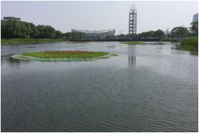 龍形水系位于北京奧林匹克森林公園中心區(qū),是亞洲最大城區(qū)人工水系;項(xiàng)目為龍形水系W7區(qū)域,水面31560 m2。因水源為城市中水,水質(zhì)相對(duì)于地表水差,雖經(jīng)前端處理,但水質(zhì)整體為劣Ⅴ標(biāo)準(zhǔn),總氮超標(biāo)嚴(yán)重,頻發(fā)水環(huán)境問(wèn)題;